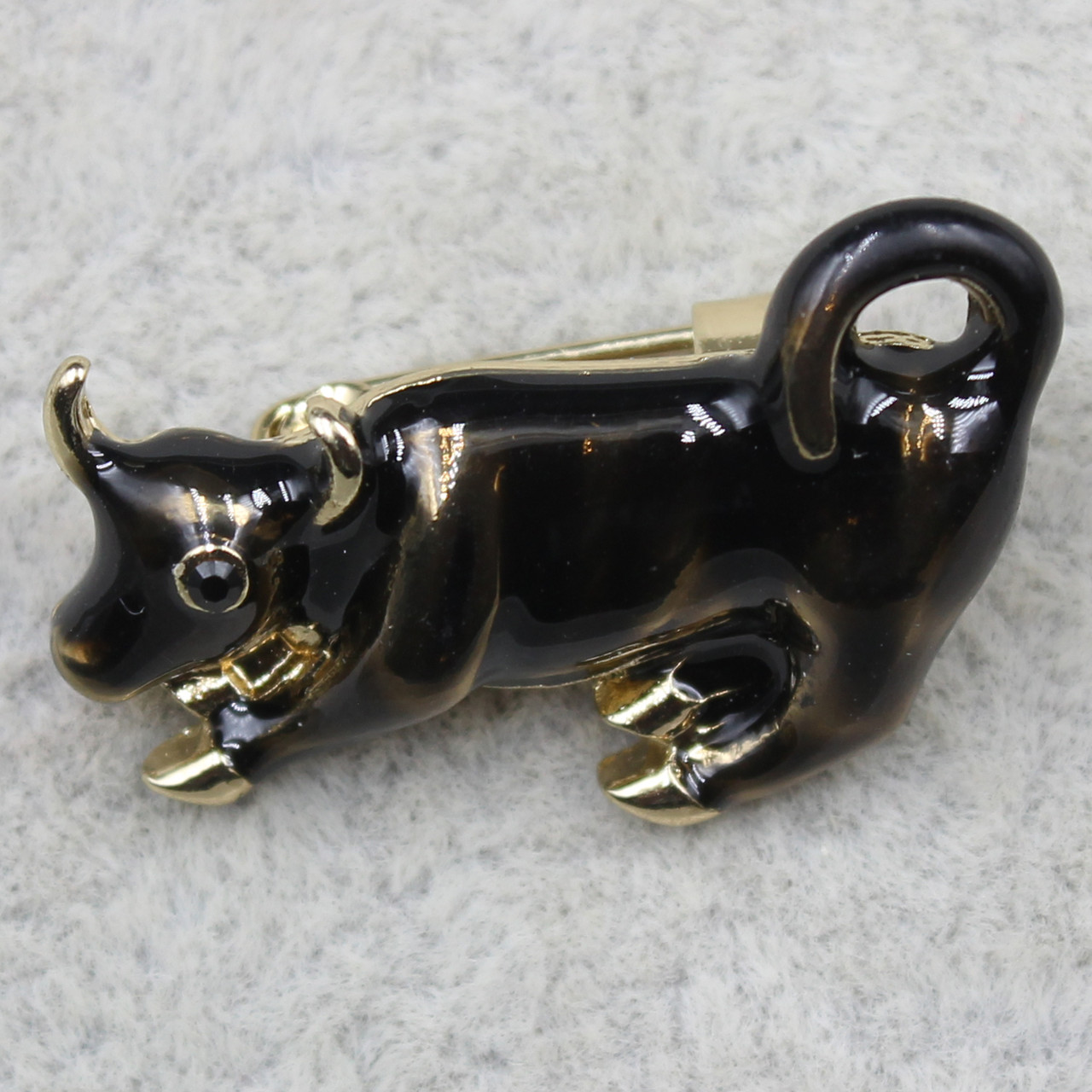 Брошка металева золотиста маленька Корова покрита кольоровою емаллю символ року розмір 26х18 мм