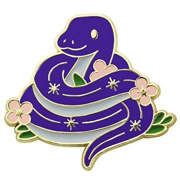 Значок кліпса на золотистій основі метал фіолетова змія покрита кольоровою емаллю розмір виробу 30х30 мм