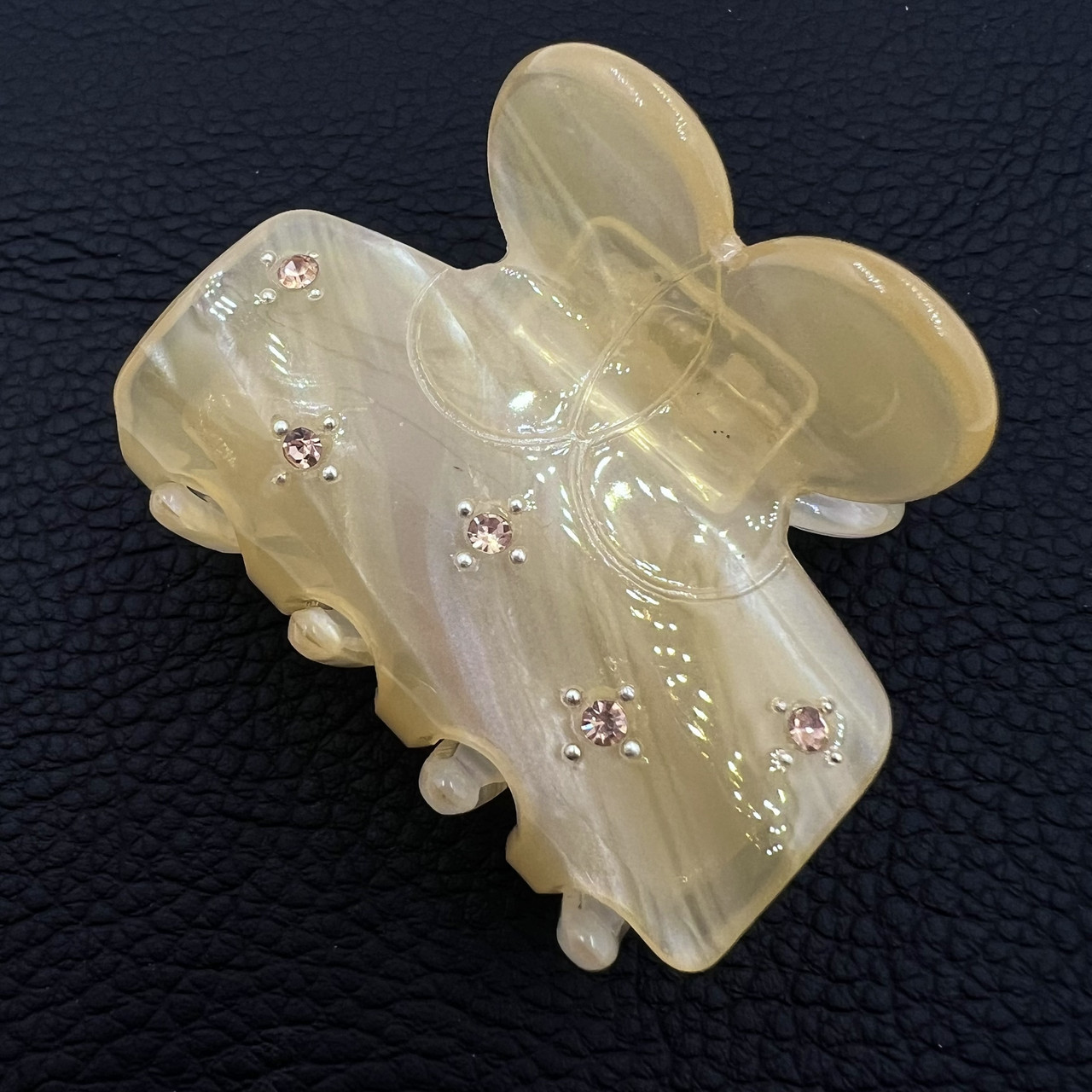 Краб для волосся міцний французький пластик бежевого кольору з жовтими стразами довжина 5 см висота 4 см
