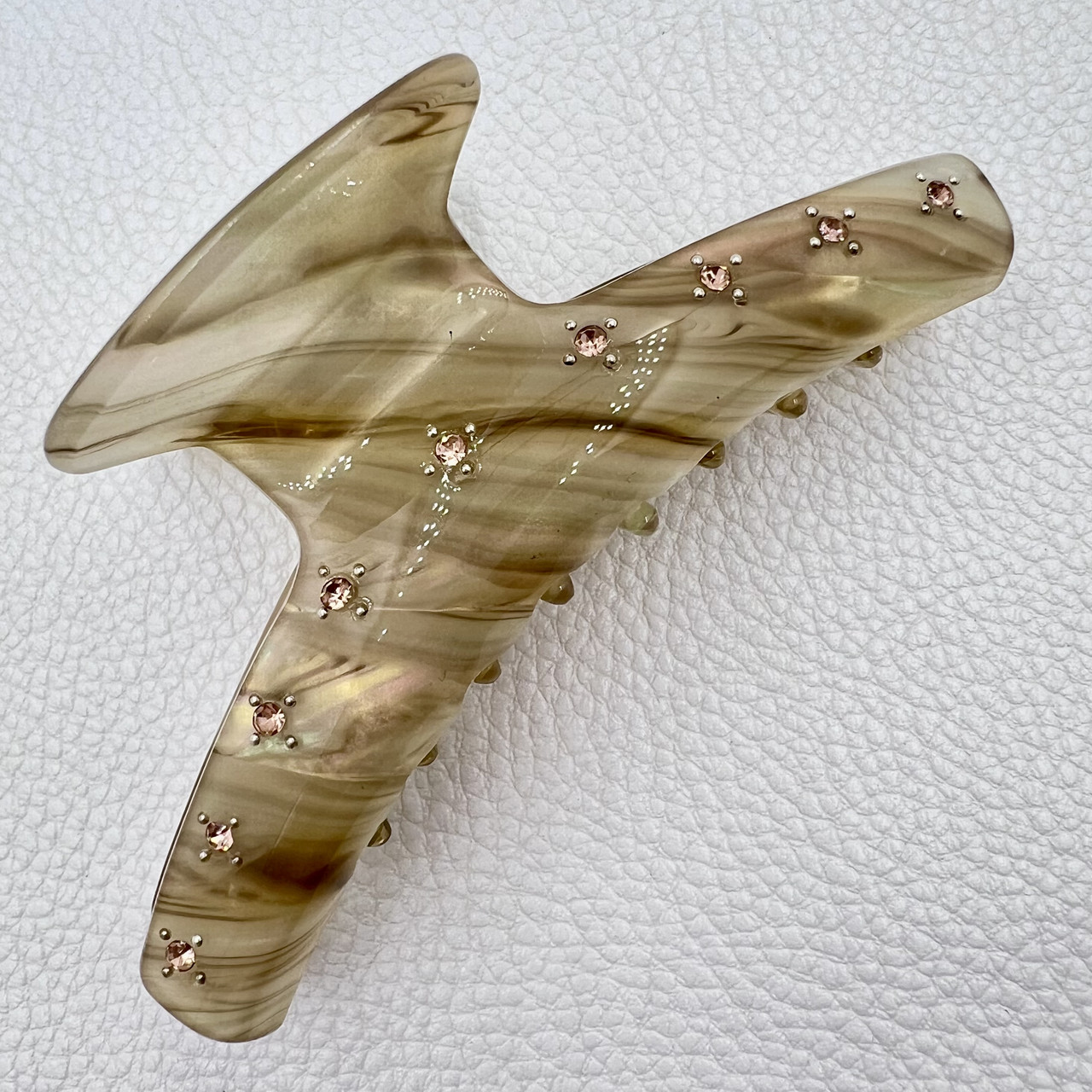 Краб для волос акриловый глянцевый перламутровый с узорами разноцветный с стразами размер 3.5х9.5 см