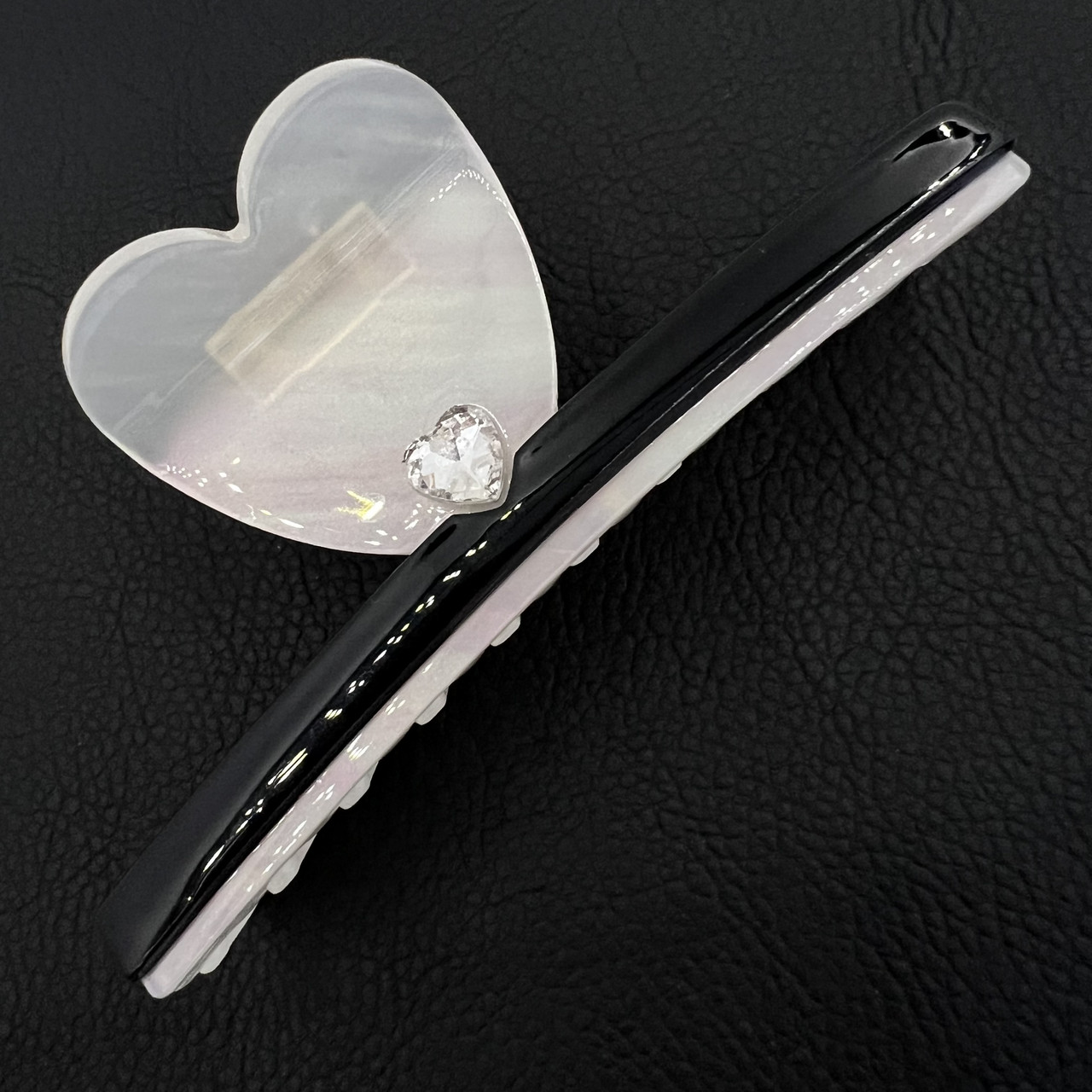Краб для волосся пластик акрил із сердечком двоколірний із перламутром і кристалом довжина 11 см ширина 4.5 см