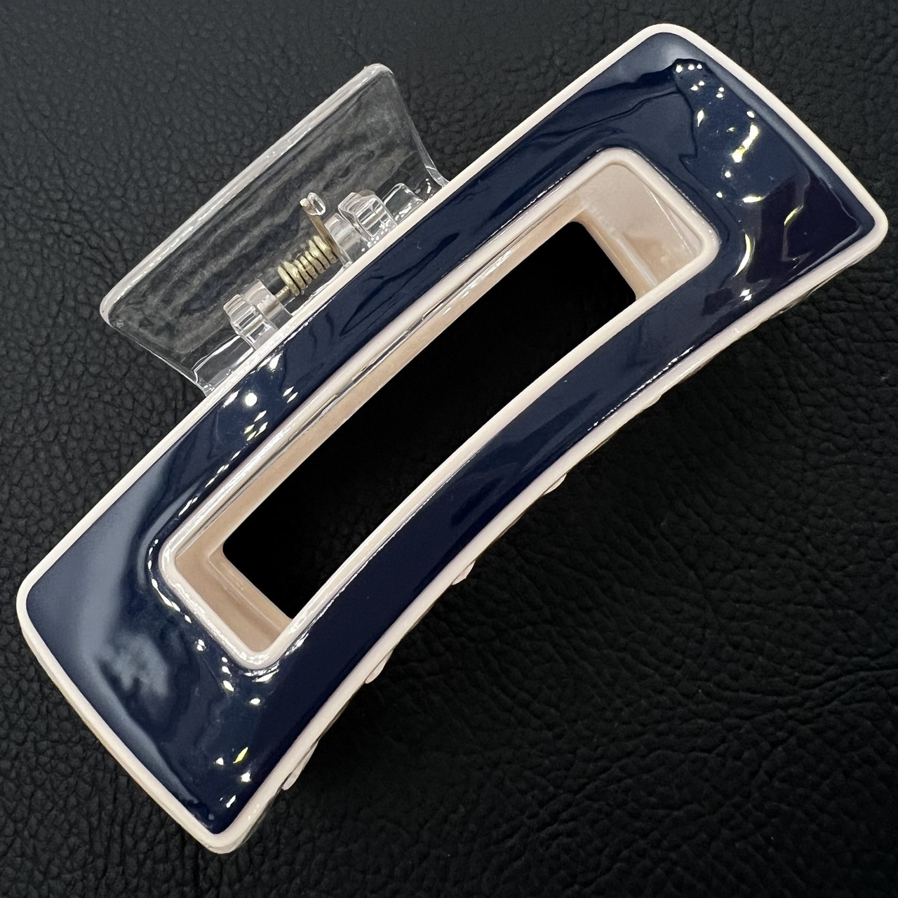 Краб для волос прочный французский пластик глянцевый бежево синего цвета ширина 4.5 см длина 10 см