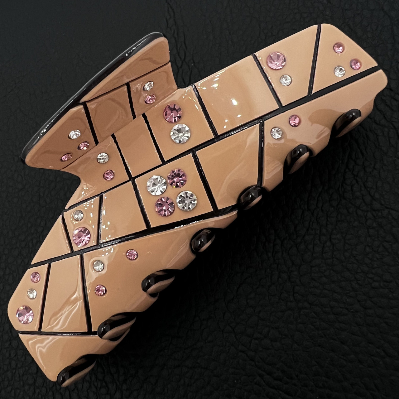 Краб для волос прочный пластик глянцевый персикового цвета с узорами и переливающимися стразами ширина 3.5 см длина 9 см
