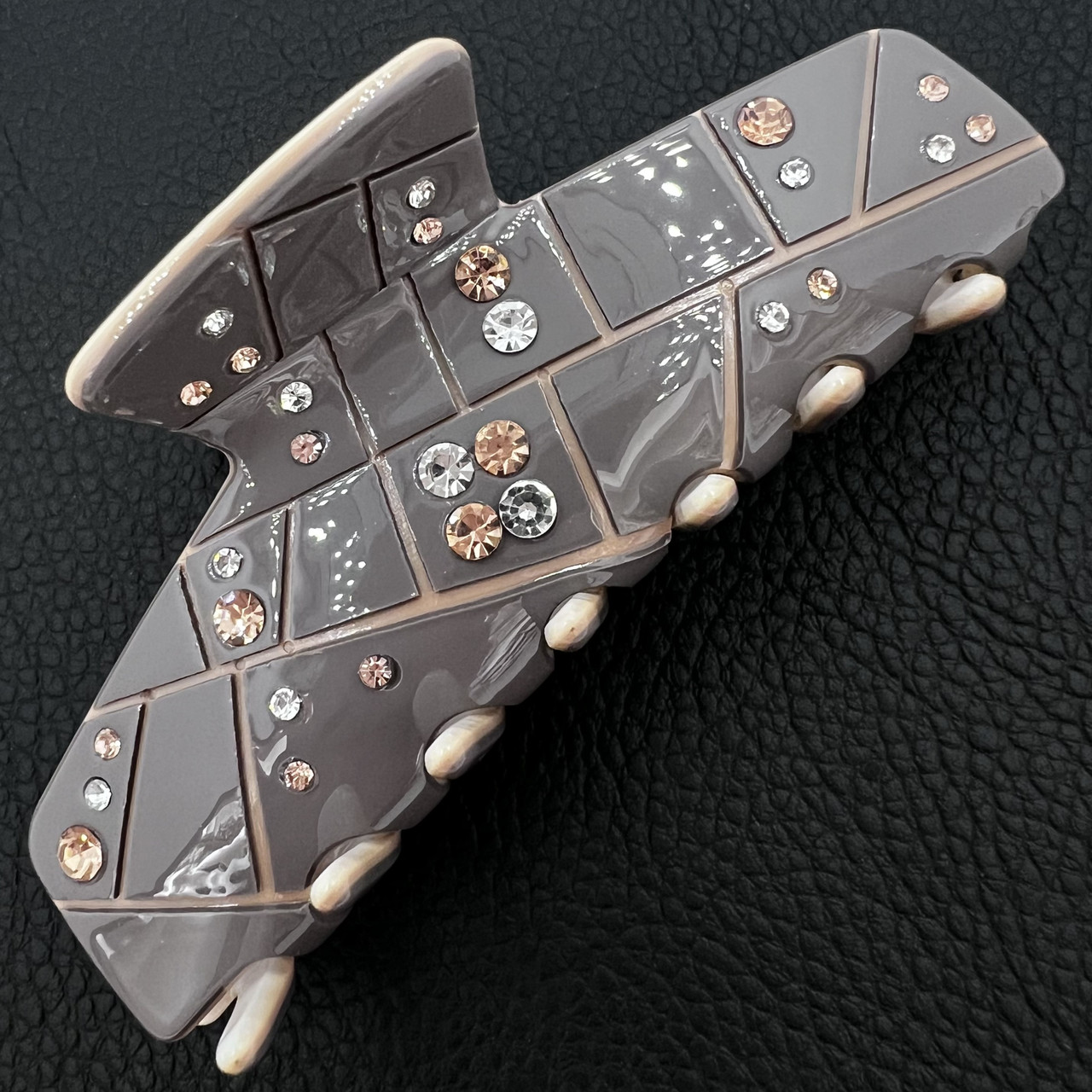 Краб для волосся міцний пластик глянсовий колір капучино з візерунками та стразами, що переливаються, ширина 3.5 см довжина 9 см
