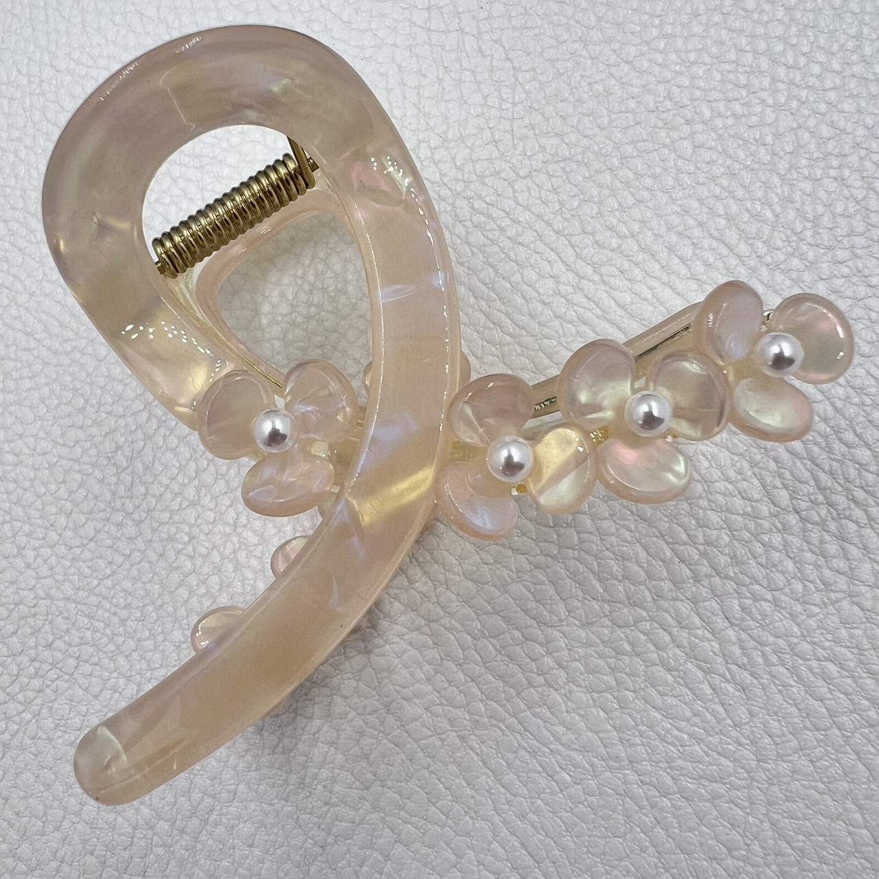 Краб для волосся міцний пластик мармуровий бежевого кольору з квіточками та намистинами розмір 80х50 см