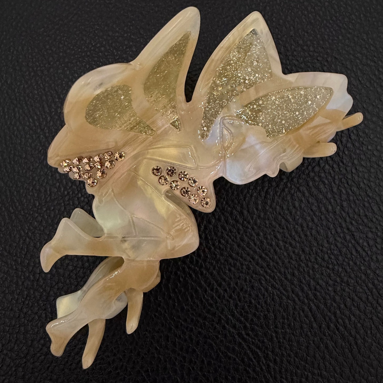 Краб для волоc акрил глянсовий у формі феї з крилами карамельного кольору з блискіточками та стразами розмір 11х5 см